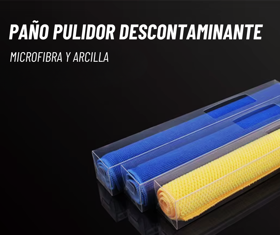 El paño descontaminante para pintura de vehículos está diseñado para asegurar una limpieza efectiva antes de aplicar cera o realizar pulido. Su superficie de arcilla especial permite eliminar contaminantes sin dañar la pintura, mientras que la cara de caucho polimerizado mejora el agarre y el control durante su uso, garantizando resultados uniformes y duraderos.